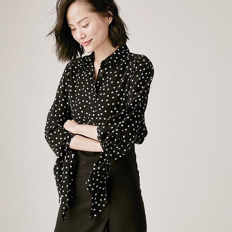 设计感宽松真丝黑色波点衬衫女来自设计师Anna。设计感宽松真丝黑色波点衬衫女 通勤系带衬衫2019春新款,以调皮韩范实穿,性价比高为特点主打市场,为粉丝提供质优价廉的穿衣风格。
